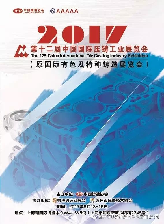 2017年6月13-16日,第十二屆中國國際壓鑄工業(yè)展覽會,我公司將攜帶旗下主要產(chǎn)品參加展出,屆時歡迎各位觀眾前來參觀,我司展位號:w4-243